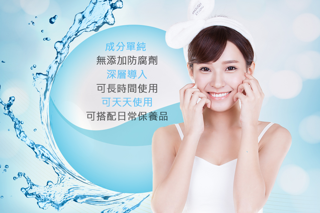 質地細緻,搭配分子更小的去離化水,將水深層導入肌膚,讓肌膚呈現水嫩、淨白、透亮的姿態。成分單純、無添加防腐劑、深層導入、可以長時間使用、可天天使用、可以搭配日常保養品使用。